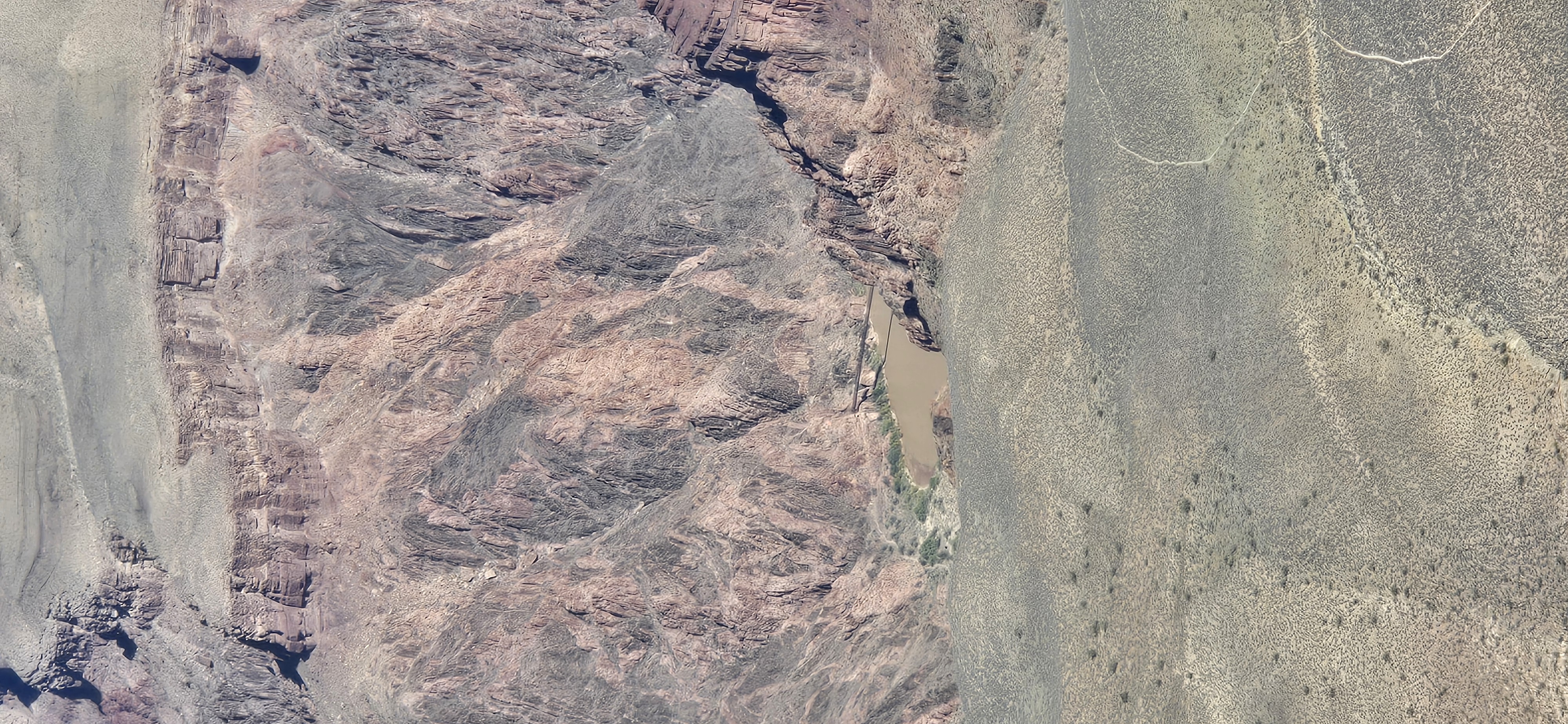 위의 전망대에서는 거의 보이지 않는다. 700미터 (2300ft) 아래에 있고, 캐년이 너무 광활해 육안으로는 거의 찾아내기 어렵다.